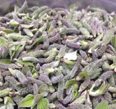 它是构树上的花,构树的雄性花序俗称构棒棒,雌性的是圆型后期会变成红色。在春天到来,长出如毛毛虫一般的花序,还未开花的时候是可以吃的。