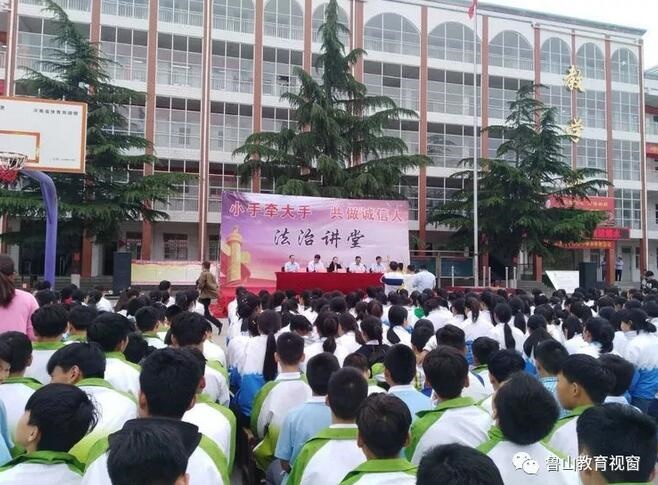 人无信不立,业无信不兴,国无信不强。为创造诚信的校园环境,增强学生的诚信意识,提高守法、守规的自觉性,营造诚实守信、积极向上的良好氛围,培养学生立志做诚实守信人,进而通过学生用自己的小手,牵起爸爸妈妈的大手,一起继承和发扬诚信这一优良传统。5月4日下午,由鲁山县人民法院、鲁山县教育体育局主办,县实验中学承办的“小手牵大手,共做诚信人”的法治讲堂在该校正式开讲。县政府副县长史晓天、县人民法院院长王宏伟,县教体局党委书记、局长赵东亮,县法院副院长张燕伟,执行局局长胡春生等领导应邀出席,县法院院长王宏伟为该校师生上了一堂生动、实在的法治教育课,让与会人员受益匪浅。本期法治讲堂由教体局局长赵东亮主持。