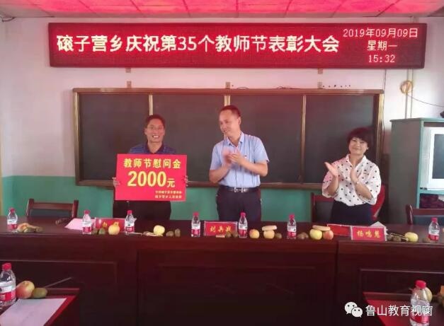 9月9日下午,磙子营乡党委书记刘兵站、乡政府副乡长杨鸣慧来到磙子营中心校,参加该乡举行的庆祝第35个教师节表彰会。