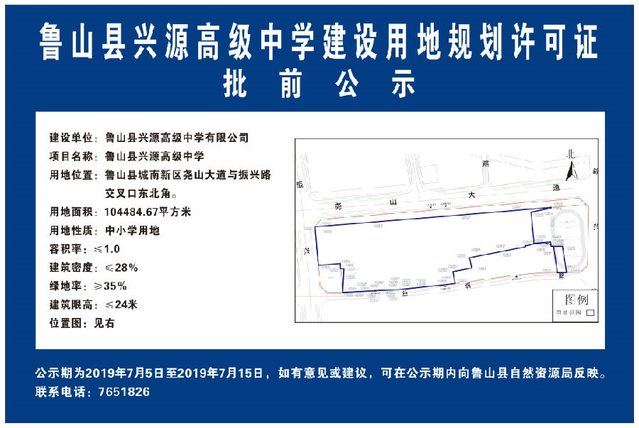 鲁山县兴源高级中学建设用地规划许可证批前公示