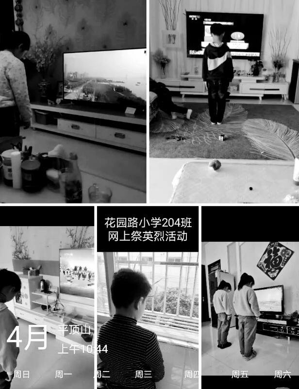 4月4日上午十点,花园路小学校委会成员在校园举行向抗击新冠肺炎疫情牺牲烈士和逝世同胞悼念活动,同时组织全体师生开展“清明祭英烈 共铸中华魂”为主题的看直播祭英烈网络活动。