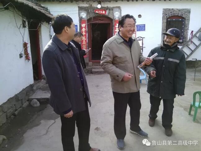 为响应鲁山县委学习贯彻宣传党的十九大精神,把党的十九大精神转化为推动新时代我县各项事业发展的实际动力的号召,2017年11月18日,26名党员干部在校党委书记、校长丁跃伟的带领下,驱车来到鲁山二高的对口帮扶村尧山镇马公店村,开展聚力脱贫攻坚、宣讲十九大精神、给贫困户送温暖的“大走访、大宣讲、大扶贫、大见效”活动。