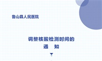 自即日起,鲁山县人民医院愿采尽采人员核酸检测时间调整为:8:00——17:30(中午不休息)采集地点:新院区门诊楼前广场(尧山大道与花园路交叉口东500米北)老院区门诊楼前(人民路东段)检查费用:35.38元(单采)出具报告时间:4—6个小时结果查询电话:0375-561015