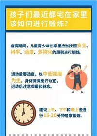 “强健体魄,抗击疫情”鲁山县教育体育局发布《中小学各年级寒假体育锻炼计划》为贯彻落实教育部《关于进一步加强中小学生体质健康管理工作的通知》精神和积极响应国家体育总局办公厅关于大力推广居家科学健身方法的通知要求,鲁山县教育体育局推出了中小学各年级寒假体育锻炼计划,指导全县中小学生居家科学合理的进行