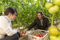 12月26日,在位于河南省平顶山市鲁山县张良镇余庄村西地的几个连片蔬菜大棚里,一些工人正在给西红柿打杈和疏果。“这是是我们张良镇的红鹰创业工程孵化中心,目前占地70多亩,现有8个暖棚和一个30多亩的甜柿园,有9个党员在此参与管理或务工,农忙时节还有60多个留守妇女和弱劳动力在此打工呢。”在此领工