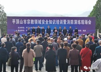 10月28日,平顶山市宗教领域安全知识培训暨消防演练现场会在鲁山县召开。市民族宗教局局长赵永宏,县委常委、统战部长孙林出席现场会。赵永宏讲话,孙林致辞。赵永宏指出,宗教场所的消防安全事关千家万户,事关社会和谐稳定和宗教和睦,绝不能掉以轻心。各相关单位、各宗教活动场所要强化消防安全意识,积极开展消