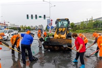 8月23日,在鲁山县鲁平大道西段,该县城管队员和环卫工人清理了道路积水、淤泥后,用洒水车对路面进行冲洗,路面顿时恢复干净整洁。为尽快消除强降雨给城市环境造成的影响,确保广大市民群众生活环境良好和正常出行,鲁山县城市管理局组织干部职工和环卫工人加班加点、连续作战,全力以赴清理道路积水、淤泥,逐步恢