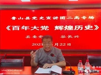 为了更进一步推动党史学习教育深入开展,不断深化党史学习教育成效,县党史学习教育领导小组成立了专门的党史知识宣讲团深入基层进行巡回宣讲。6月22日上午,宣讲团重要成员、县委党校资深讲师谷长兴老师到鲁山二高为全体教职工做了一场题目为“百年大党,辉煌历史”的党史学习专题报告。谷长兴老师以毛泽东思想、邓