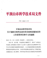 近日,平顶山市科学技术局下发了《关于创新引领型企业培育首席科技服务员等工作单位获奖单位和个人的通报》,清研鲁山先进制造科创中心、鲁山县华豫万通工程技术有限公司、河南万恒塑胶有限公司、平顶山市铭玺机电有限公司4家县企业荣获“2021年度技术合同认定登记工作先进单位”,同时这四家企业负责技术合同认定