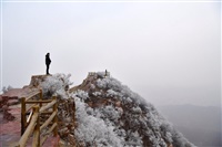 1月23日,游人在河南鲁山阿婆寨景区观赏雾凇。当日,受大雾和强冷空气影响,河南省平顶山市鲁山县阿婆寨景区出现雾凇景观。新华社记者 冯大鹏